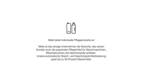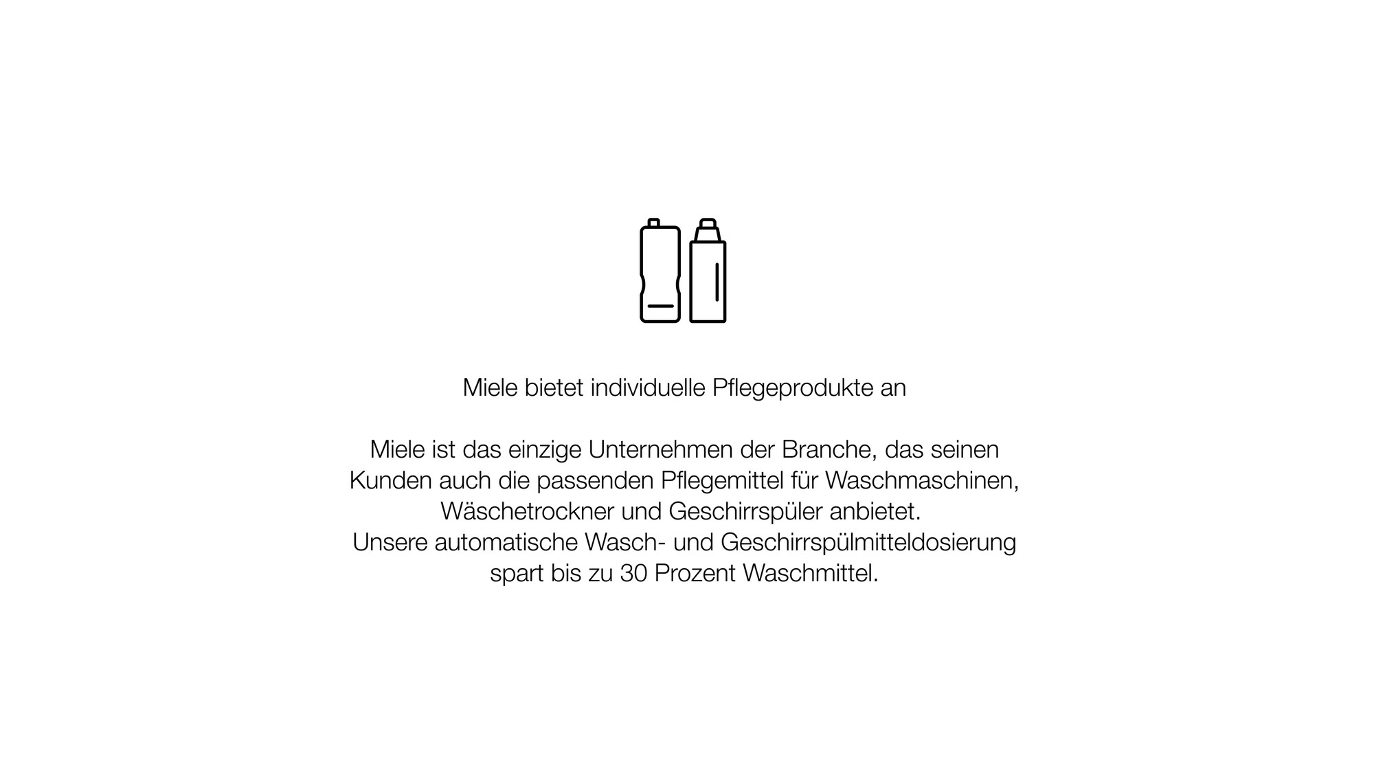 Juba ettevõtte asutamise ajast on meie tootefilosoofia tuum toota kvaliteetsete materjalide ja peensusteni väljatöötatud valmistusmeetoditega eriti hea kvaliteedi ja pika kasutuseaga tooteid. Pika kasutuseaga Miele seadmega võite seega olla kindel, et tarbite vähem.