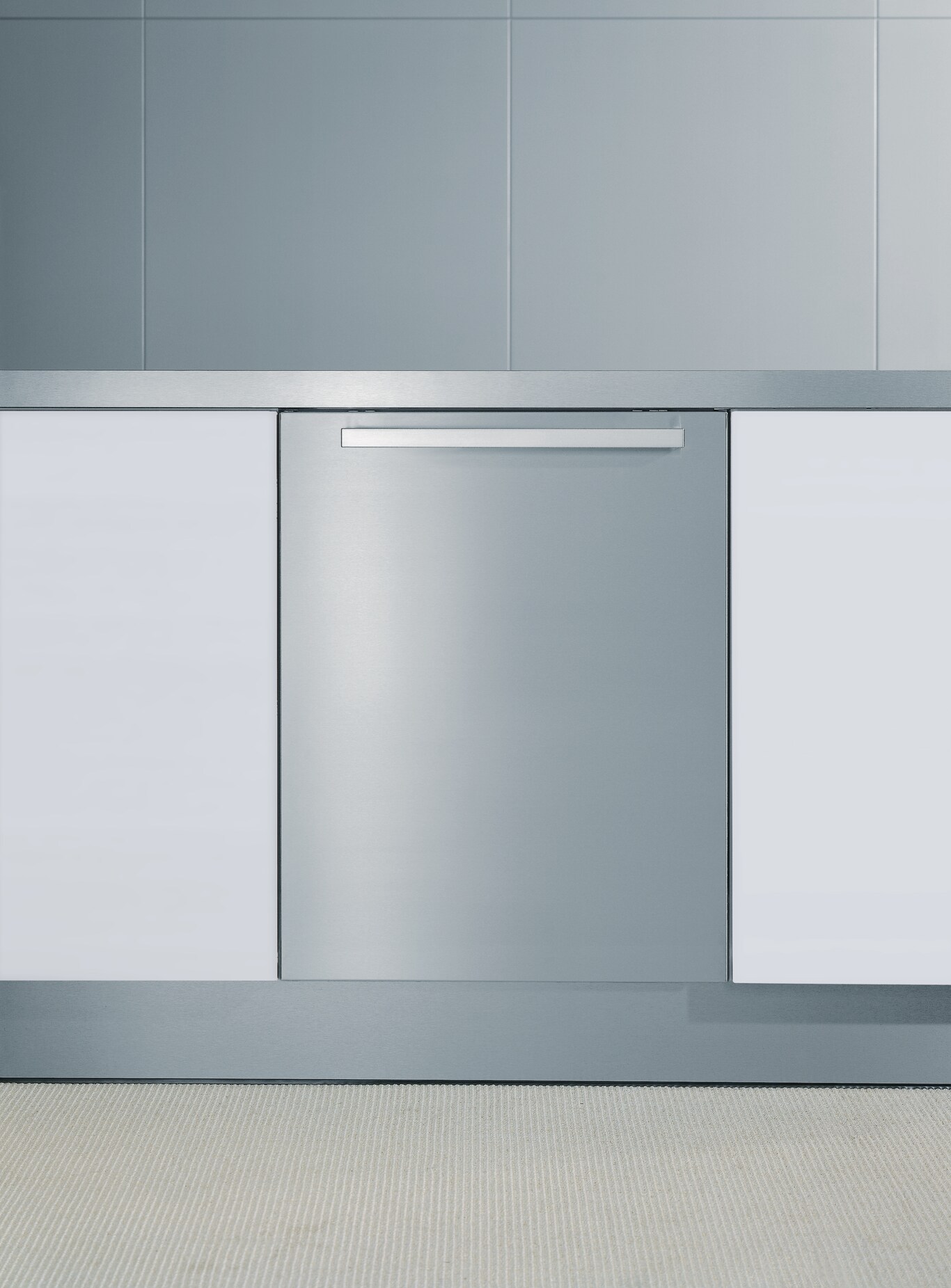CleanSteeliga Classic-Design-käepidemega täisintegreeritud nõudepesumasinale.